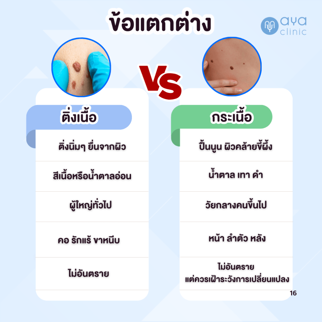 | หัวข้อเปรียบเทียบ | กระเนื้อ | ติ่งเนื้อ |