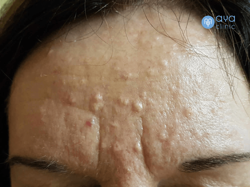 - มักขึ้นบริเวณที่มีต่อมไขมันเยอะ เช่น หน้าผาก จมูก แก้ม