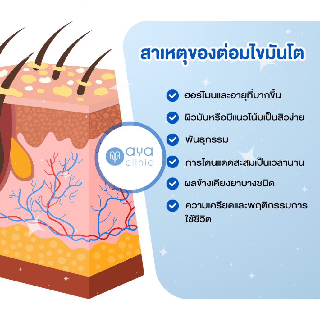 - สาเหตุ ต่อมไขมันขยายใหญ่