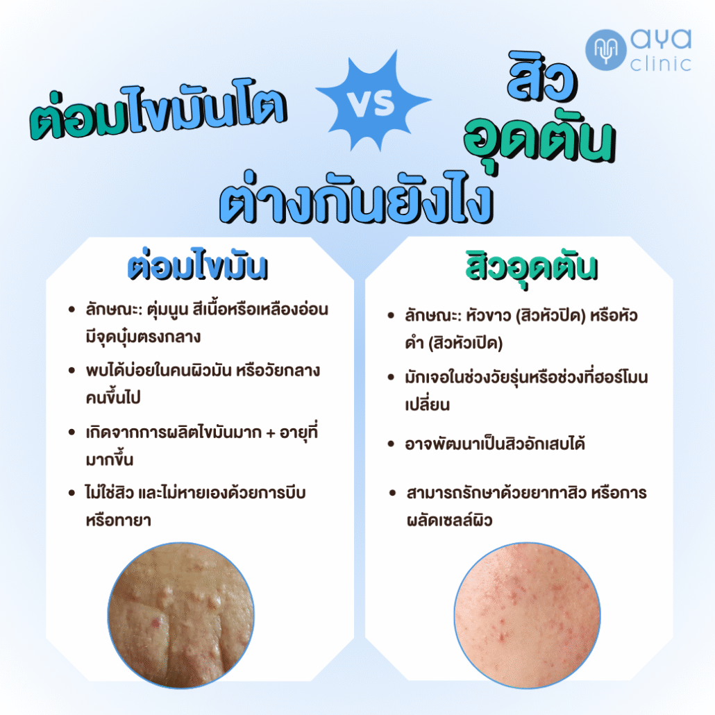 ต่อมไขมันโตต่างจากสิวอย่างไร?